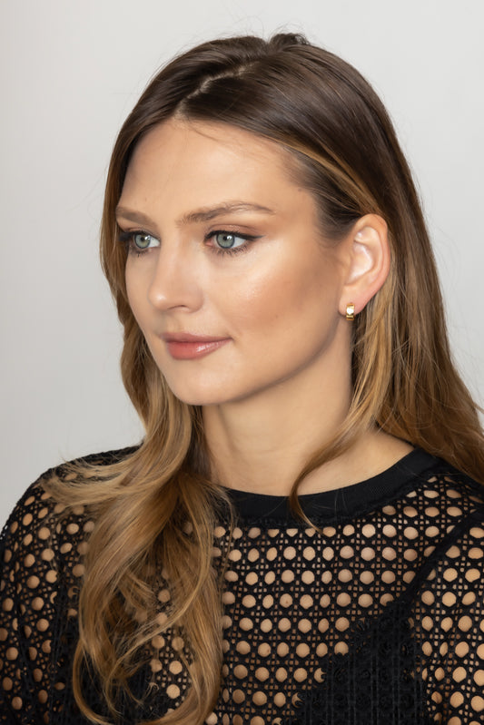 14K Gold Dipped Huggie Hoop CZ Paved