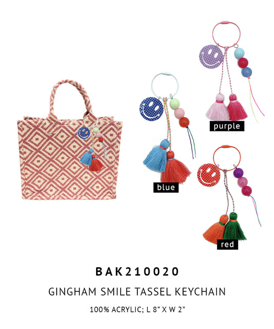 Gingham Smile Tassel Keychain