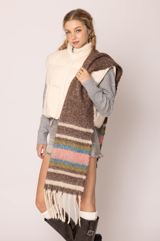 Stripe Cozy Scarf With Fringe
