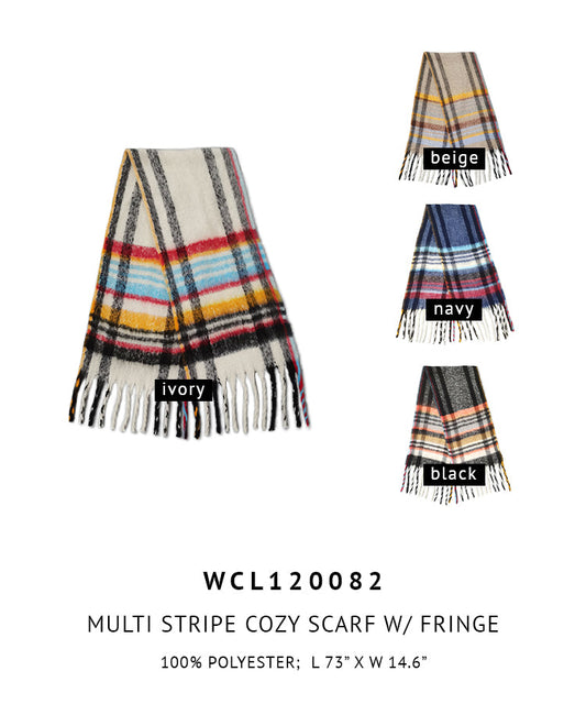 • Multi Stripe Cozy Scarf With Fringe