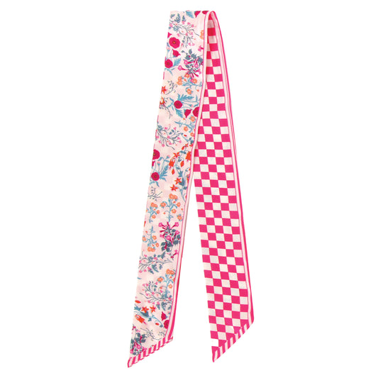 Check Floral Skinny Scarf